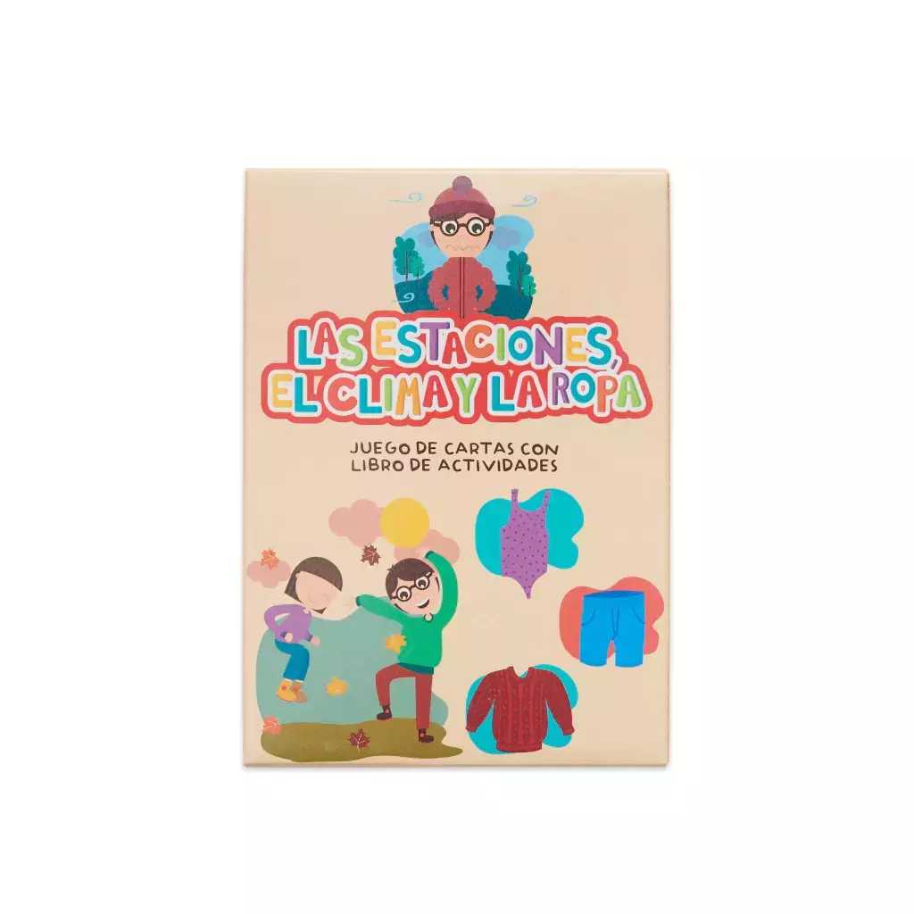 Contiene imagenes que trabajan los distintos climas que hay en el planeta, las 4 estaciones y los meses que corresponden a cada estación y junto con eso las prendas de vestir que utilizamos habitualmente.